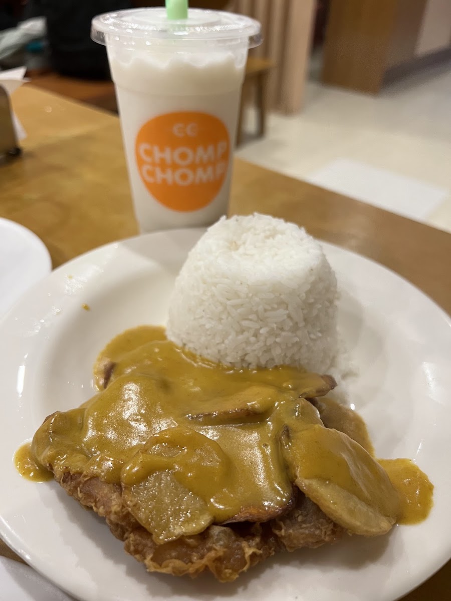 You need to climb a flight of stairs to reach Chomp Chomp. Interior is simple and this place is usually filled with students. Some seats are available at the balcony. Too bad former neighbor Roots & Herbs is gone. First-timers MUST try the Singapore Laksa! It's affordable, shareable, and served hot & spicy. Chicken Teriyaki junior size is just right to get filled. It's like most teriyaki dishes I've tried but simpler. The egg topping is cooked perfectly! Fish Fillet in Mango Sauce tastes like dory with mango jam. It's good, light on the tummy, and simple. I suggest partnering it with something. Fried Noodles are good for the first few bites. The rest of the way, I got tired of the flavor. Eating this with something is the right way to go.