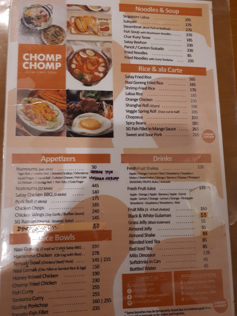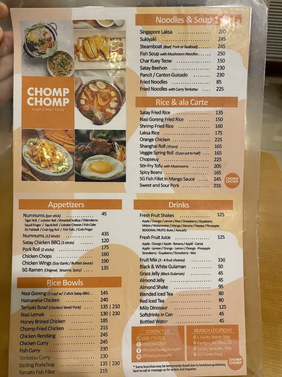 Whether you're seeking a fulfilling meal to break your day or a familiar taste reminiscent of beloved Asian street foods, Chomp Chomp's menu invites you to enjoy straightforward flavors in a comfortable and approachable environment.